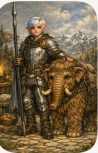 , he or she, learns how to sharpen weapons and fix shields and armor, like a smith, ya know. And then after he learns how to be a servant and errand boy for a knight, then he learns combat with all manner of weapons. And he or she learns a special weapon, laddie, called a lance, but there be nae horses here on Carnival World. Mayhap you could tame a wild boar, instead. I had a cousin who did that once. Sarcastic and charismatic wee beastie, but a champion Dwarf Hammer Warrior, feared far and wide. Denovin was my old king’s general and made life a livin’ hell for bandits or invaders, but he drank too much beer and ate too much meat and sweets. Got as fat as the hog he rode, and one day his heart gave out. They had a swell funeral for him, and his Hammer and Half Plate armor are on display in our royal museum at the White Dwarf Undermountain citadel