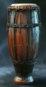 Rhythmically tapping his well-tanned and scarred, ham-fisted hands, on the cracked white leather top of a large tan Congo drum,