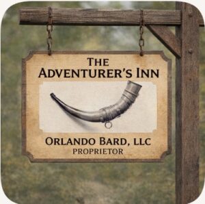 About one o’clock I walked briskly over to the Latino Burrito House. I left my long Orc Star Metal axe in my room but had my hunting knife. On my back, behind my fancy pack, I had my guitar case. My bard outfit was formal, blacks and chocolates, with a Spanish masculine blouse of ruffled white. Not as audacious as when I hold bard entertainment shows in my inn. I was holding a package wrapped in shimmery purple paper,
