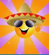 On the left side of the front door is a giant yellow smiling sunny guy with wrap around shades and a white sombrero,